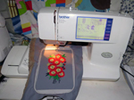 Gắn khung thêu vào có thể thêu nhiều hình hoa, chữ số, hình con thú,... kích thước lớn và chỉ đặc.